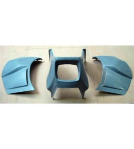 Carénage en 3 parties, Semi Tourisme 415, tête de fourche + 2 flancs, à adapter aux motos avec phare rectangulaires, en fibres de polyester, livré brut de gel coat à peindre, renforcée aux points de fixation en roving, points de fixation non percés...