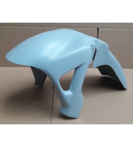 Garde boue avant racing, en fibres de polyester, livré brut de gel coat à peindre, renforcée aux points de fixation en roving, points de fixation repérés mais non percés...