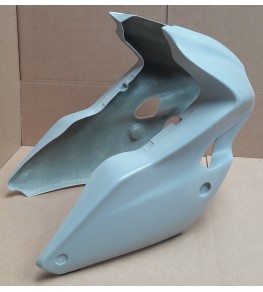 Bas de carénage en deux parties, livré avec pattes de fixation et notice de montage, en fibres de polyester, livré brut de gel coat à peindre, renforcée aux points de fixation en roving, points de fixation repérés mais non percés...